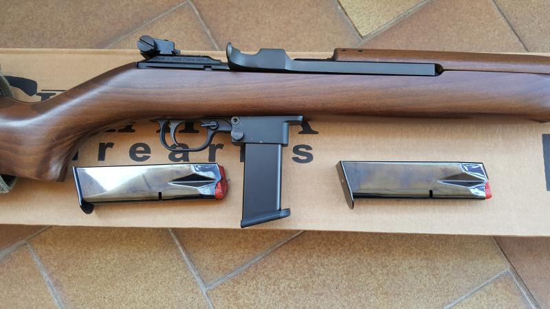 Un compañero al que le ha caducado la licencia y no la renovará, motivo por el cual la tengo guiada a mi nombre desde el 27/11/17 ( o sea menos de diez días ), me ha encargado que ponga a la venta esta Carabina M1 del 9 PB fabricada por Chiappa con tres cargadores dos de ellos originales y el tercero un Mec gar de 18 cartuchos, el arma como se puede apreciar en las fotos esta en muy buen estado tanto de estética como de funcionamiento.
