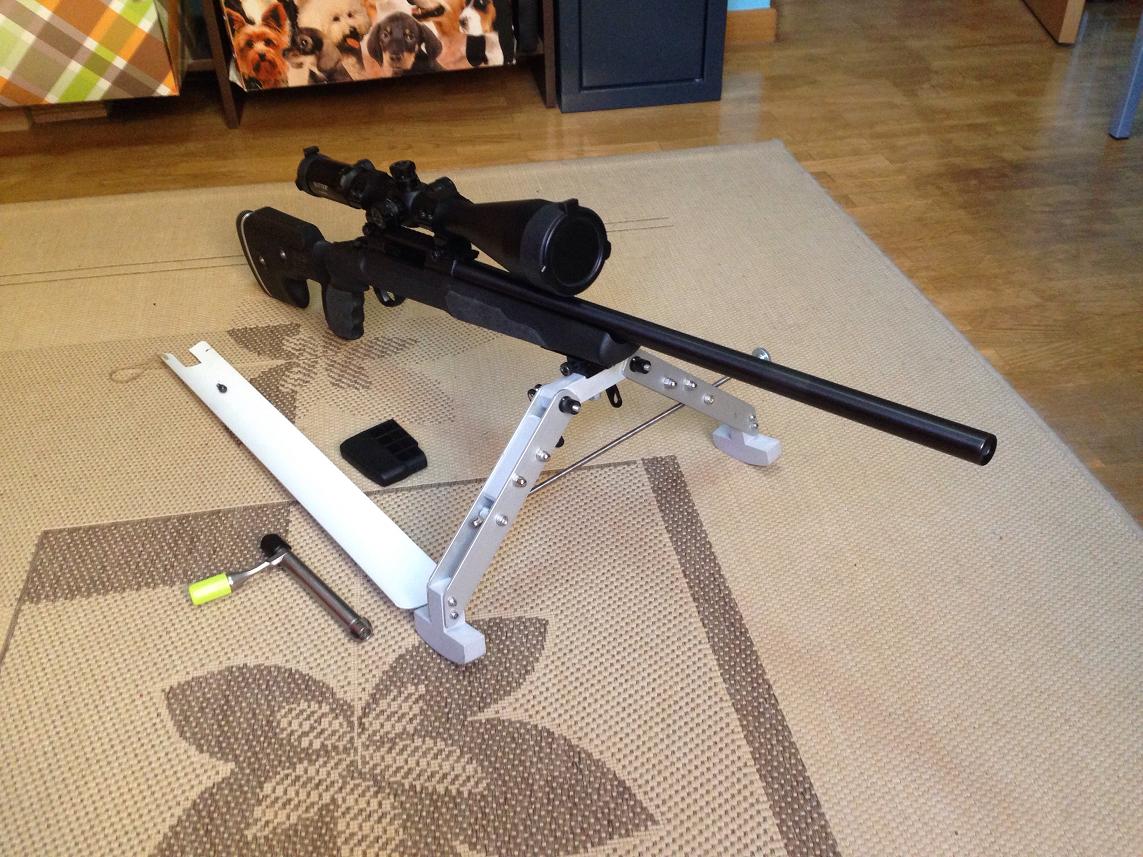 El bípode que se ve en las fotos es de fabricación casera pero funciona a las mil maravillas. Lleva un adaptador picatinny para su anclaje al rifle que sirve para los dos bípodes de la foto. Se cambia de uno a otro con un solo tornillo.