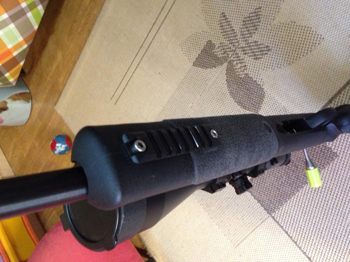 Es de Julio del año pasado y con su correspondiente rodaje hecho. En la parte inferior del guardamanos lleva instalado otro picatinny para colocar bípode u otros accesorios compatibles, este se puede desmontar y ponerle su tornillo portanillas que por supuesto se incluye. La culata lleva de serie enganche rápido portanillas en el lado izquierdo y sus anillas que también se incluyen.