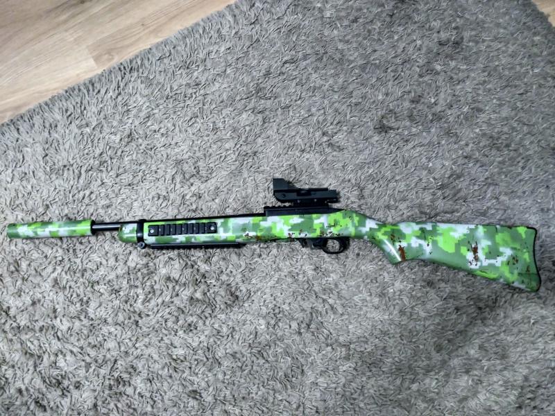 Buenas, vendo carabina marca Ruger modelo 10/22 semiautomática, de las mejores en su categoría, tuneada, con visor punto rojo NcStar, mira Kasnar 4x20 y funda, todo por 400€, portes a cargo del comprador, guiada en D, saludos.