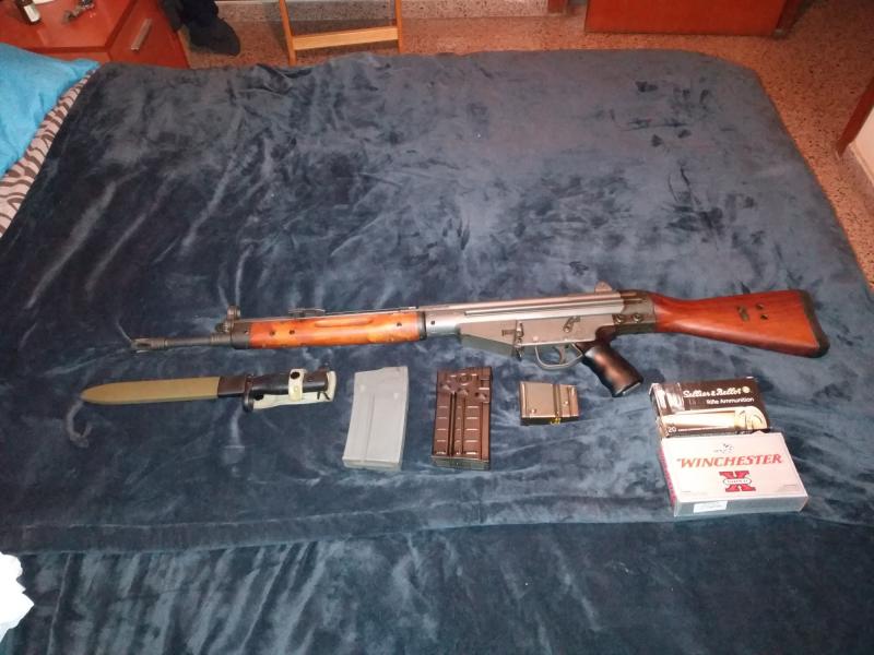 Por cese de actividad vendo CETME C Impecable. . comprado nuevo en armería hace menos de un año Guiado en D. . . también se puede guiar en f para tiro deportivo. . . Con kit de limpieza original en su compartimento sin usar Impecable. . ni un rasguño y muy bien engrasado Solo a tirado un par de cajas. . . muy buena precisión y suave. . . Bayoneta con funda nueva Cargador de 3. . cargador de 20. . . cargador de 20 del HK. G3. . mucho más ligero. . y totalmente compatible 2 cajas de munición Envío a la comandancia correspondiente incluido en el precio