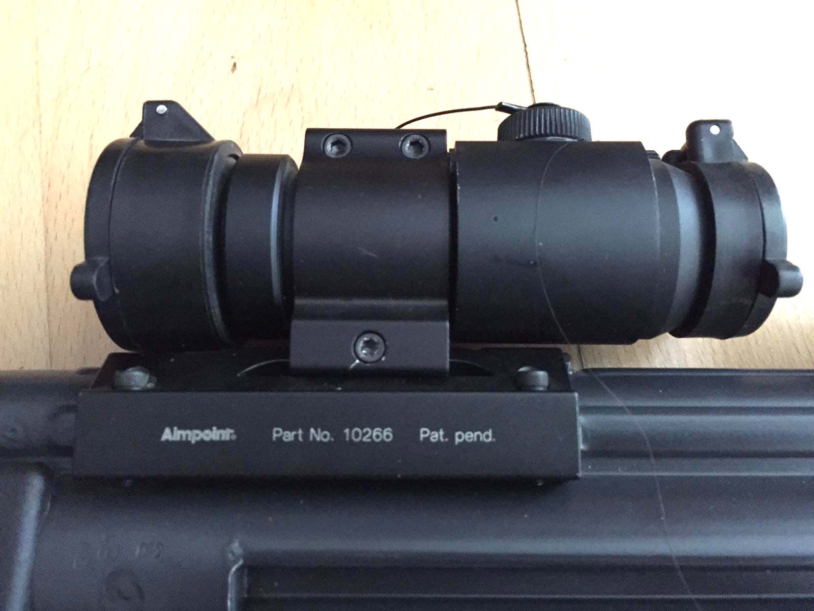 Se ofrece con funda de transporte acolchada, montura de perfil bajo Aimpoint/B&T, cargador principal, dos cargadores adicionales curvos con grapa de fijación para sujetar uno con otro -capacidad 30, de colección-, culata extensible -de colección-, guardamanos SureFire con linterna de iluminación y bocacha original. Todo por 4.700 euros. No incluye el visor Aimpoint de las fotos.
