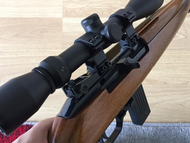 En muy buen estado, con mira telescopica, cinta militar, y de regalo un libro americano de la M1 y un porta cargadores de cinturon.