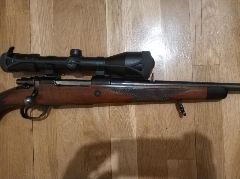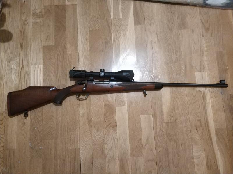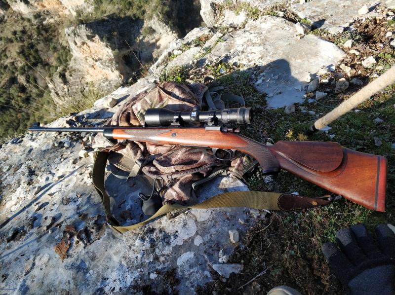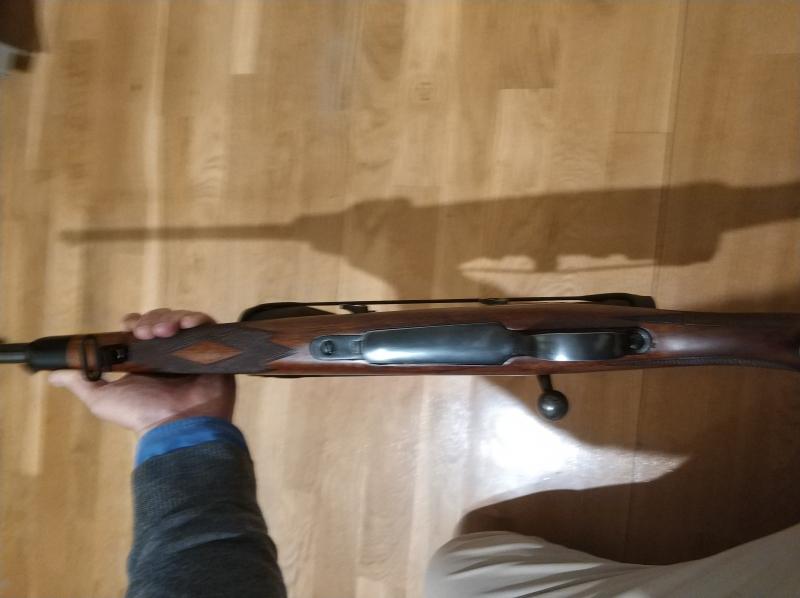 Vendo Santa Barbara 7RM. El rifle lo compré hace unos 4 años a un señor que lo heredó de un amigo y no sabía contarme mucho, pero como podéis ver en las fotos es claramente una versión mejorada respecto a los estándar: venía con puntal y tapa del pistolet de ébano (o madera negra), cantonera roja, glass bedding, la culata es fina, la nuez cerrojo está tratado de alguna manera que tiene color...y tira de lujo. Está cuidado pero usado, con leves marcas en culata y cañón.