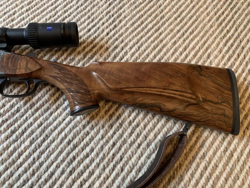 Por no usar vendo precioso Monotiro Blaser K95 Luxury, en calibre 270 WM , grabados de rebecos, pistolete en plata, maletín Blaser , correa y cubreboca original, monturas Blaser, Visor ZEISS V6 2,5/15x 56 con torreta atv, muy poco uso y en prefecto estado. PVP 5700€