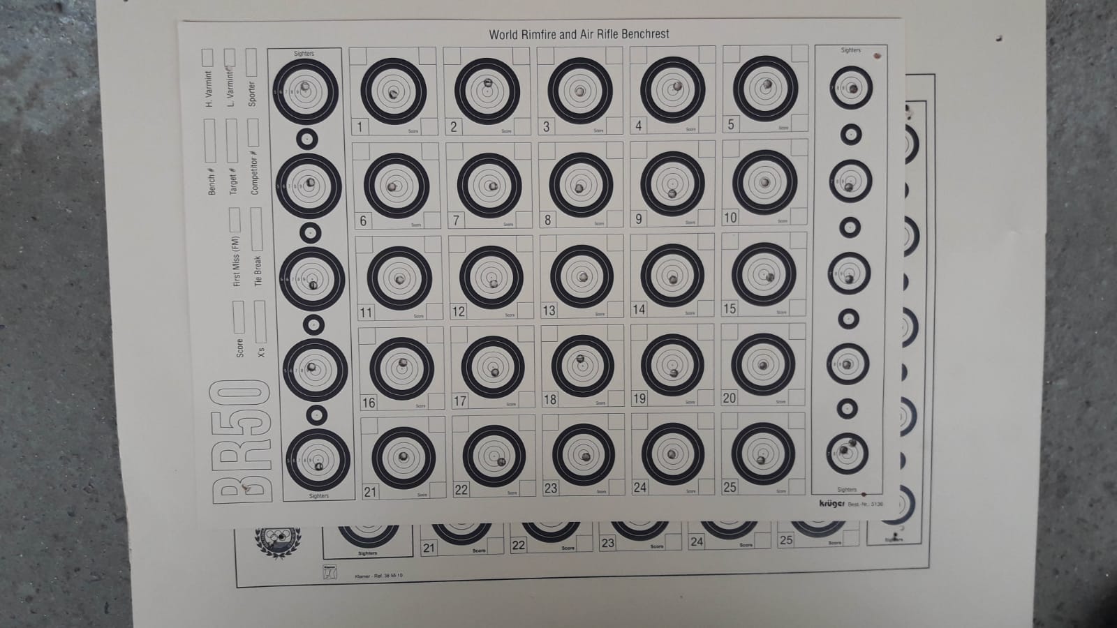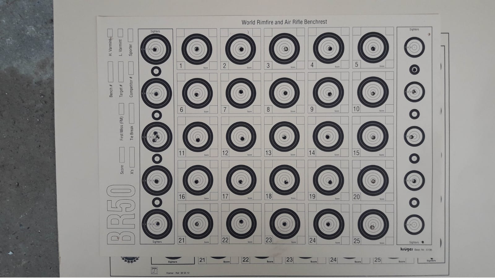 La he probado con municion R50, SK roja y Eley macht y cualquiera de ellas le va muy bien, a continuacion pongo uno blancos