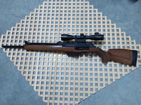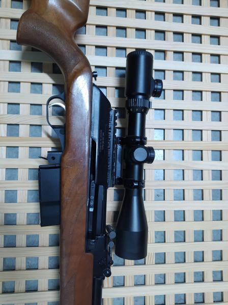 Usado pero en muy buen estado. Con visor Sutter de 1,5-6x42 con retícula iluminada. Montura lateral abatible (como muchos fusiles de tradición rusa). Freno de boca incorporado y sistema de regulación de salida de gases para poder hacerlo de repetición manual y mejorar precisión.