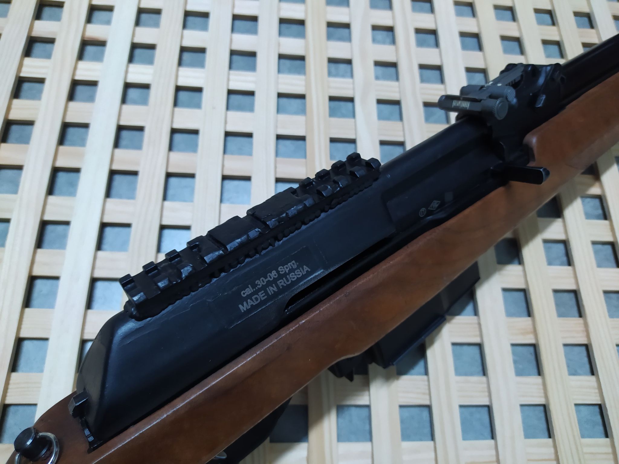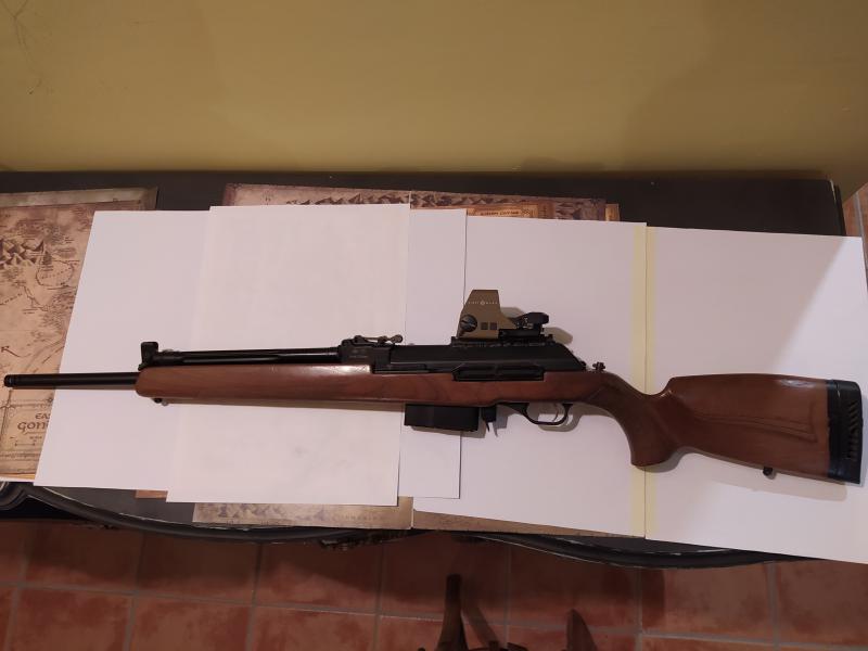 Le agregué rail piccanttiny sobre la carcasa soldado para poder poner un visor holográfico y que no quedara muy alto. Un verdadero hierro, con cerrojo de sistema del AK-47. Cargador de 2+1 y un cargador de 10 que me tiene que llegar de USA.