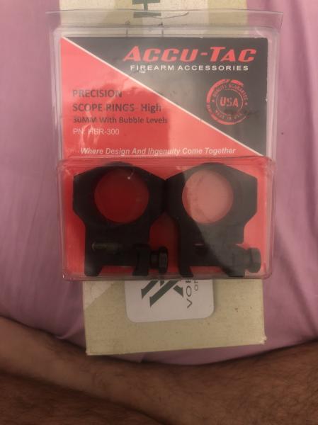 - Anillas Accu-Tac Precision Scope Rings High HSR-300 de 30mm. Llevan incorporada burbuja nivel para controlar el canteo del rifle al apuntar. Estaban montadas en otro equipo y tiene un leve arañazo una de las anillas pero están como nuevas. Como el visor , tiene garantía de por vida.