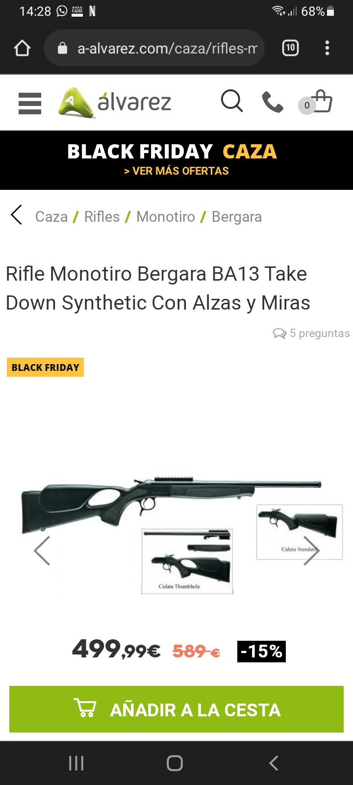 Pues eso, busco un monotiro, a ser posible Bergara cal 308W, cañón corto y rosca homologada, a precio razonable, ya que en armería Álvarez los he visto a 499 euros. Pongo foto.