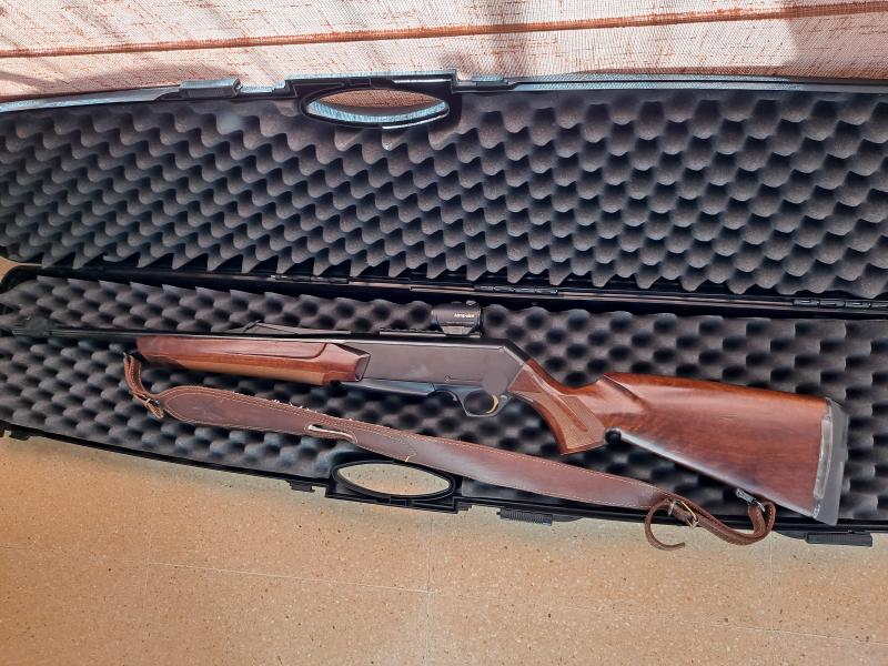 Vendo mi rifle Browning Long Track en 30-06. Alguna marca de uso pero no llega a 120 tiros. El motivo de la venta es que me he acostumbrado al Blaser con visor y me voy a quitar el semiautomático. Funciona a la perfección. Está centrado con la Sako superhammered.