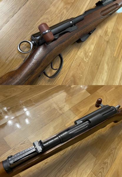 Pongo a la venta este magnífico Schmidt Rubin G11 en calibre 7,5x55 Swiss, comprado recientemente en este foro y para el que, lamentablemente no dispongo del tiempo que esta arma se merece en la galería de tiro. Como ya sabréis se trata de la versión larga de la más conocida carabina K11 y directo antecesor del soberbio K31. El rifle fue fabricado, conforme a su número de serie, en 1915 y puede presumir de conservar todas sus piezas con la misma numeración. La madera (nogal) no presenta grietas ni desperfectos importantes y el pavón, me atrevería a decir que es el original, permaneciendo en un excelente estado.