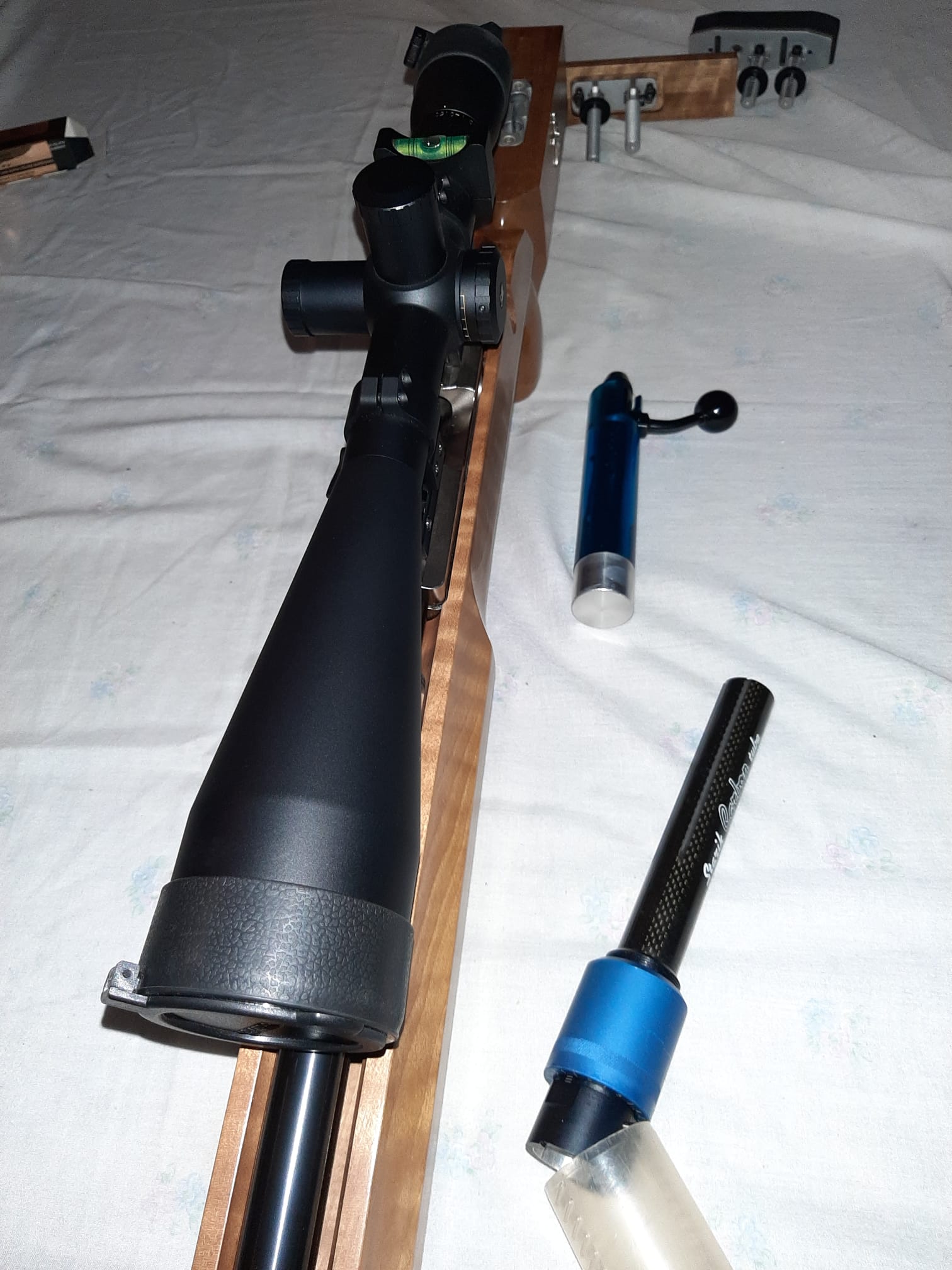 Hola a todos, por fallecimiento de un compañero pongo a la venta esta maravilla de carabina, cañon match con apenas 700 disparos hay que terminar el rodaje. Va con dos culatas la original y la que lleva montada para br, estabilizador starik carbon tube, visor sightron SIII, mas la maleta para la carabina.