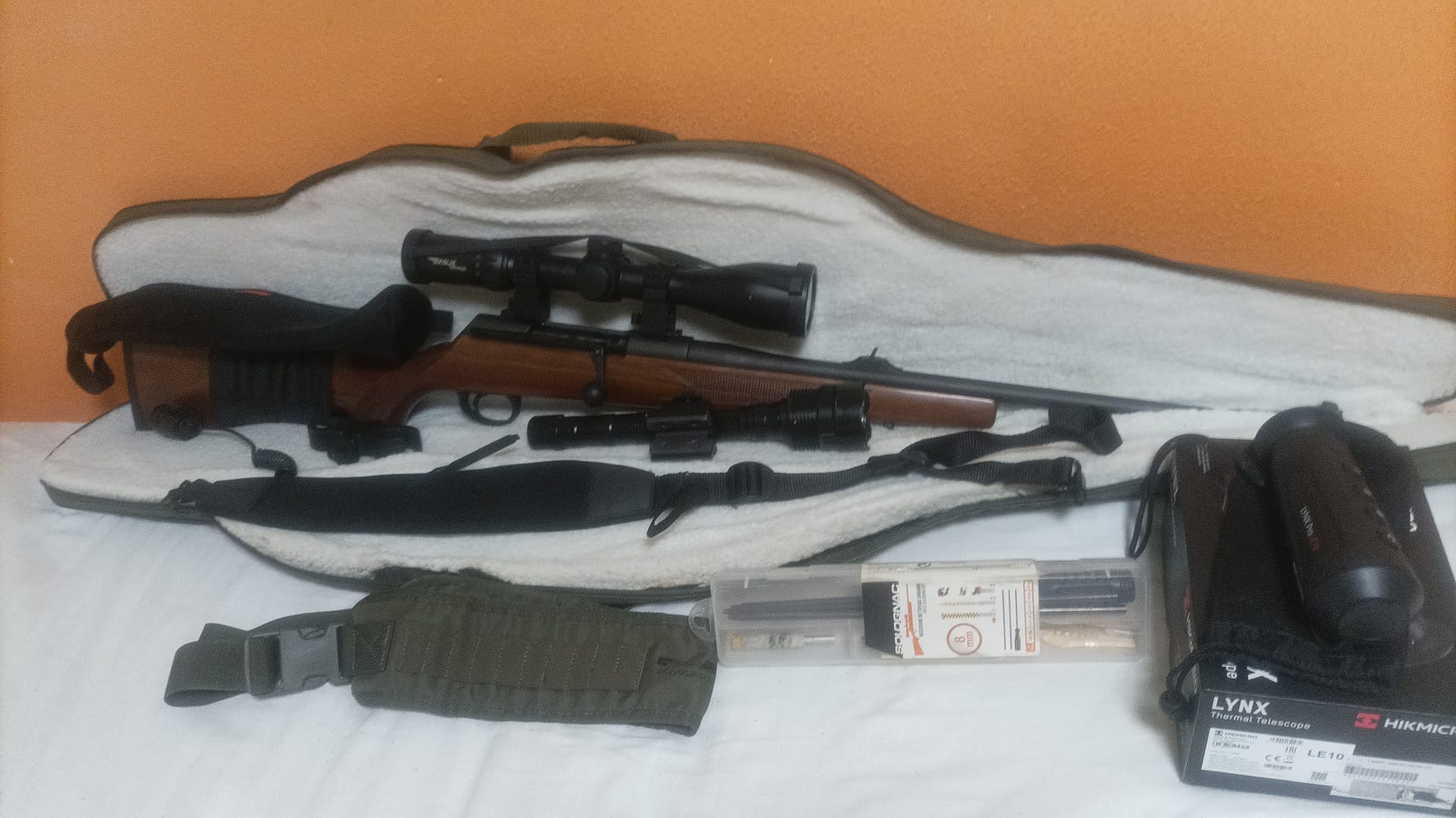 También se incluye, correa, funda para visor de neopreno, canana y kit de limpieza.