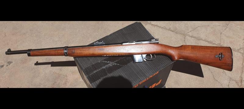 Pena que ya tengo una. Excelente arma....pese a lo que dicen algunos, bastante precisa. Hasta un cuatro ojos como yo a 50 metros mete todos los tiros en lo negro (lógicamente con miras de hierro). Solo precisa cariño, paciencia, un botador y un martillo pequeño e ir dándole con mimo a la mira. Una delicia de rifle, seguro que se vende rapidísimo.