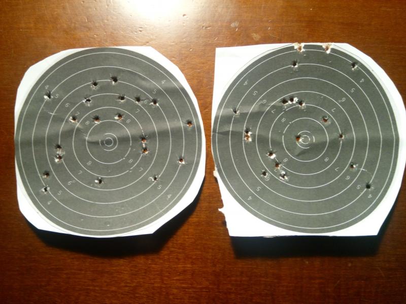 Otra foto, si hacen falta mas, a los interesados, se las mandaría. También pongo la foto de dos blancos de 11 cm. a 50 m., 20 disparos en cada uno. Sólo con el alza y punto, propios de la carabina.