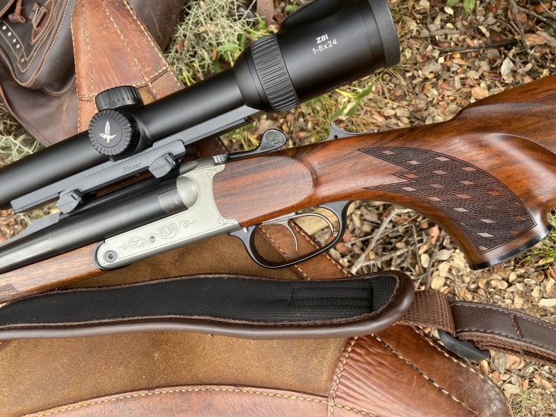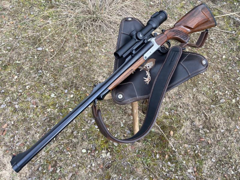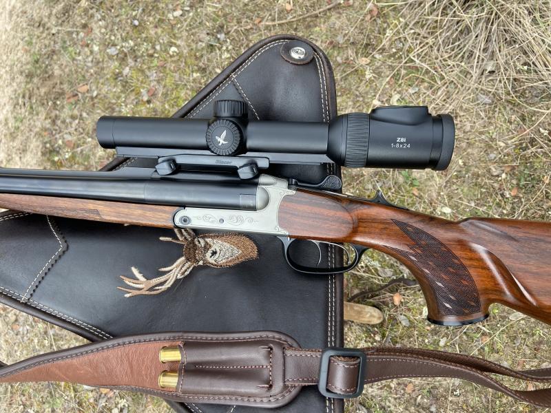 Precioso rifle express paralelo en calibre 9,3x74R. regulables en convergencia para un óptimo centrado de los 2 cañones. En perfecto estado, sin un mínimo rasguño . maletín blaser original.