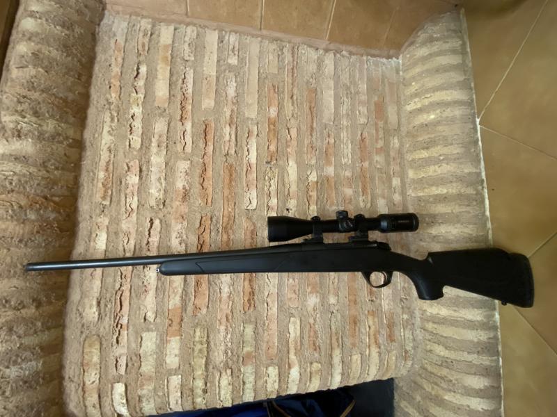 Vendo rifle Bergara B14 Sporter del calibre 308, con cargador extraible y pera táctica en el cerrojo (también tengo la bola original) y monturas completas Warne de 30