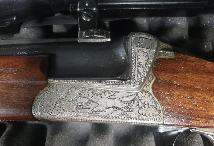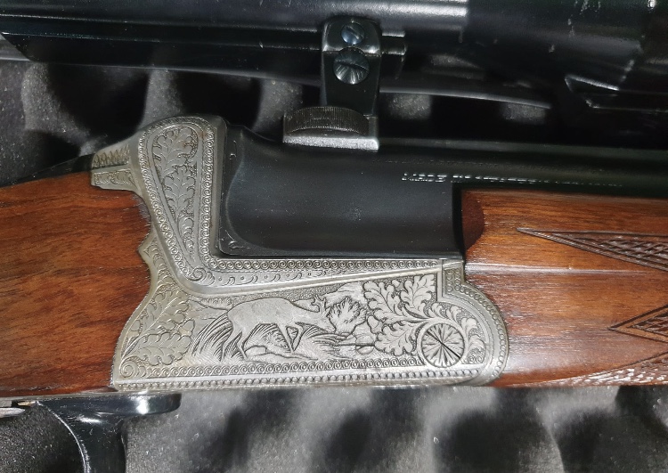 Damasquinado y grabados de animales en ambas pletinas: Maderas también picadas.