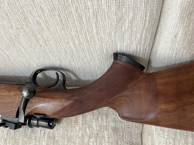 Vendido!!!por falta de uso pongo a la venta este magnífico rifle, disparo dulce no pareciendo lo que verdaderamente es, pieza única con culata de nogal con carrillera montecarlo de calidad superior con puntal y pistolete terminado en cuerna de búfalo, teja nitrurada, con bases Apel, enorme precisión con disparador afinado, cantonera tipo Holland, cerrojo mauser de 3 tetones, rifle tratado por profesional como se puede observar. PRECIO . Saludos