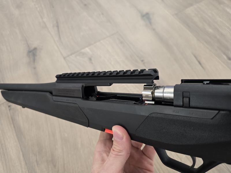 Cerrojo rectilíneo ambidiestro, se saca la palanca del cerrojo y se cambia de lado sin herramientas. Es 100% zurdo y 100% diestro en función de dónde pongas el tirador del cerrojo.