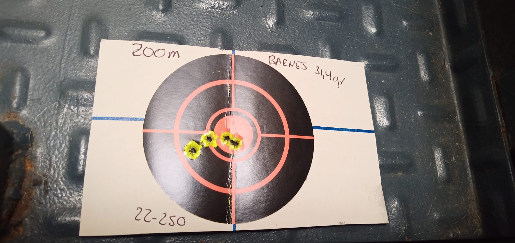 CALIBRE 22-250 MUY PRECISO SOBRE UNOS 200 TIROS CON MUNICION RECARGADA SUAVE.