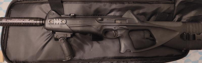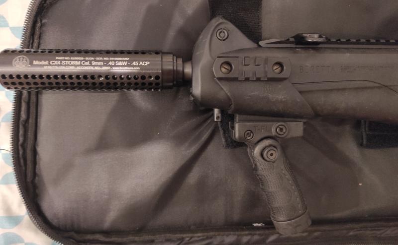 Se vende rifle Beretta Cx4 Storm, calibre 9 mm, con barrel shroud original Beretta y empuñadura táctica Fab Defense, además de 5 espaciadores de culata originales. Se adjunta cargador original Beretta 2 cartuchos (nuevo) y varias piezas de repuesto originales (palanca de montar, muelle, llave de miras). Arma en muy buen estado.