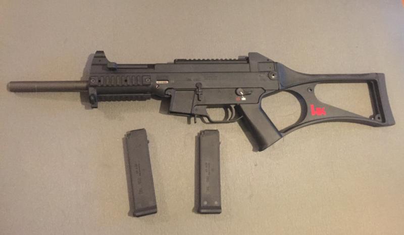los HK USC-UMP de serie son armas largas por el largo de su cañón y el largo total del arma pero lo que te encasquetaron es por la legislación de armas vigente es una arma corta que de seguro el cañón no llega a 30cm