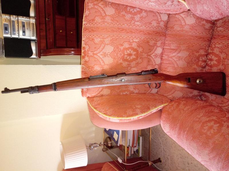 una corrección. Ese NO es un Mauser yugoslavo.. mas bien se trata de un Mauser 100% alemán.... se trata de una "captura". Lo que sucede es que los yugos según los agarraban - o después, mejor dicho - les sometían a un tratamiento donde trataban de eliminar tantos marcajes alemanes como podían a la vez que imprimían arriba la su insignia. Generalmente les pavonaban de nuevo. Si miras bien veras en algún sitio aún vestigios de marcas alemanas (en los pequeños componentes), tonos de pavonado de diferente color. y generalmente los números no coinciden ni por el forro. Es mas, si alguno coincide es un milagro...