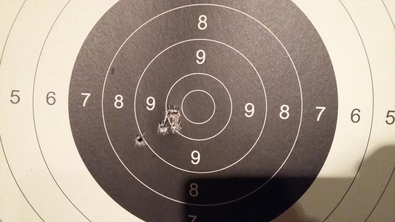 Una foto de lo que puede hacerse con el rifle. Sé que esto es fruto de un día de "inspiración" , sobre todo teniendo en cuenta que fué con las miras abiertas originales del "GREDOS", y con munición S.B. Son cinco disparos ,a 50 mtrs, apoyado en un cajón. Seguramente no es fácil de repetir la tirada, al menos para mí, pero es una referencia del buen hacer del Santa Bárbara. Saludos.