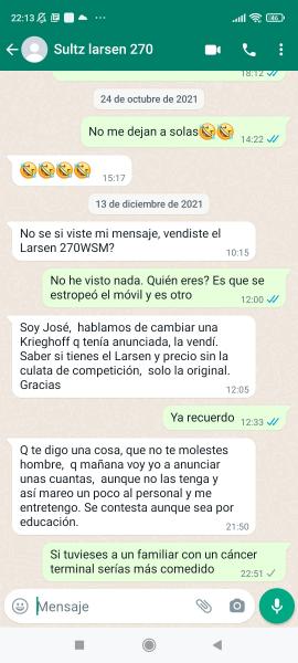 srek1980 escribió:simonides escribió:preguntas ,te contacta por whatsapp , te dice 20 chorradas y nunca más se supo.....en fin lógico que lleve 2 años en venta , a saber si tiene de verdad el rifle o es por pasar el rato y marear al personal. hablo por experiencia propia.-