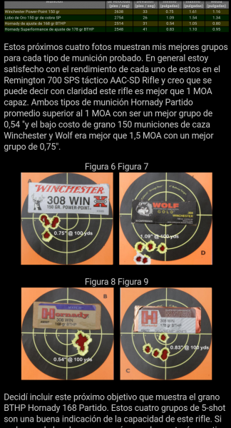 Desgraciadamente está en inglés, pero puede apreciarse fácilmente que el tirador consigue agrupaciones de hasta 0.38" a 100 yardas, con municion Hornady de fábrica.