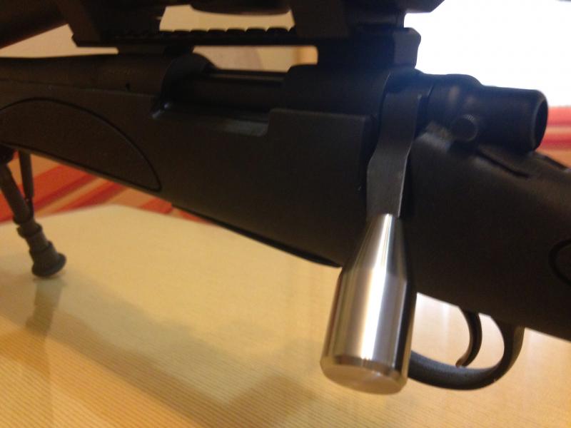 En el cerrojo le hice a la maneta una bola táctica de acero inoxidable