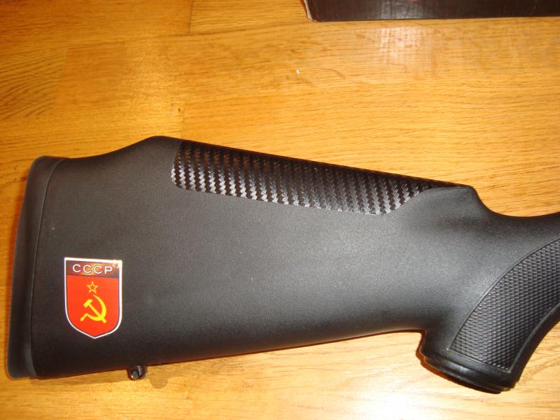 Una culata sintética, con la carrillera en vinilo de carbono y diversas pegatinas. me costo 110 euros.