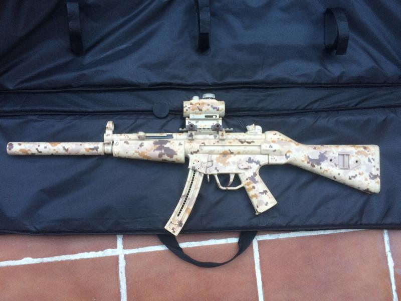 Se vende Sgs-5 con menos de 100 disparos por falta de uso, incluye el adaptador picatinny original de HK de acero aeronáutico, el alza para salvar las miras metálicas y un visor de punto rojo marca Walther, esta pintado ( con el pixelado árido del USMC ) y lacado profesional en estudio. Aparte regalo la bolsa de transporte que es una swiss arms. El fusil se encuentra en Avila pero trabajo en Madrid.