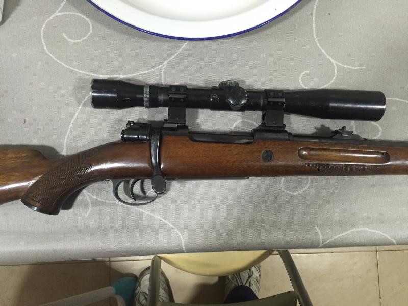 Vendo rifle Santa Barbara mod. A en 8x57, con base apel o warne, ahora lleva las warne, doy las dos, las apel no sé sin son originales, vinieron con el rifle, sin visor, 650 euros mas gastos de envio si los hay, está en Murcia, puedo añadir al conjunto un visor original Santa Barbara por 900 euros todo, el yukow que sale en las fotos no está en venta.