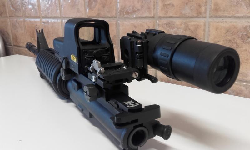 Magnificador de 5 aumentos regulable, con montura basculante.