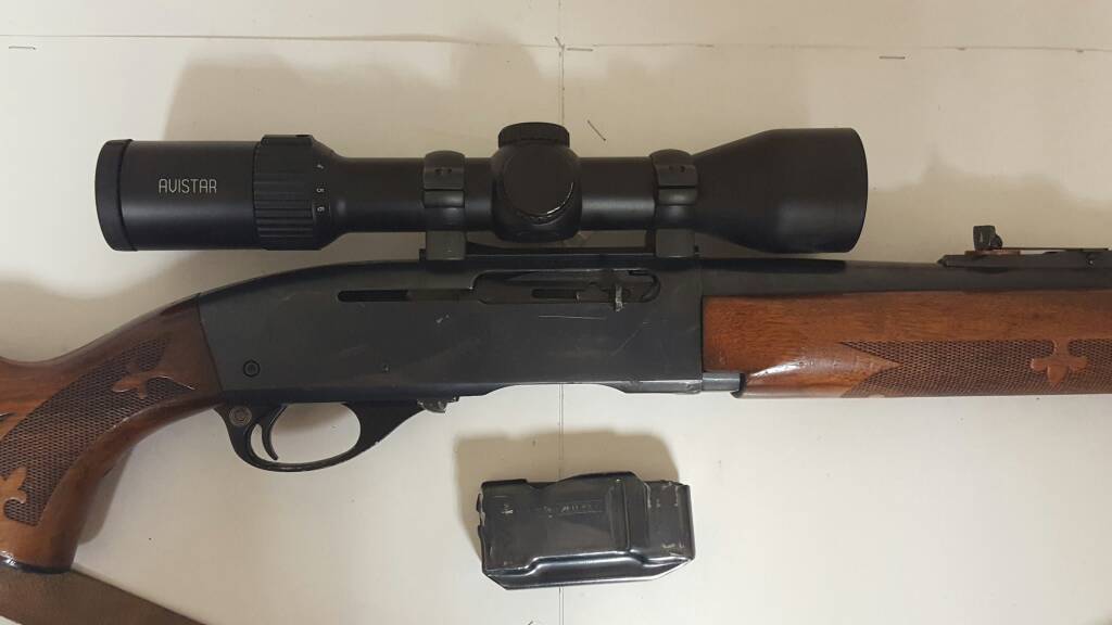 Rifle Remington modelo Woodmaster semiautomático en 30-06, con visor de batida Avistar 1.5-6x con tubo de 30mm, retícula iluminada en rojo y verde, con bases desmontables, todo incluido.
