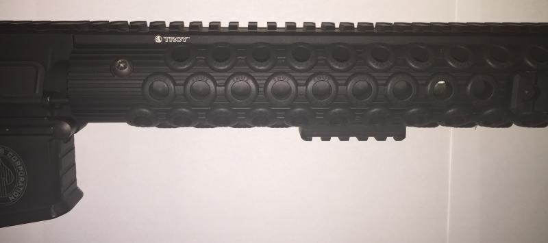 Asimismo, viene con un guardamanos TROY DEFENSE, de 11", muy ligero, que queda espectacular con la bocacha apagallamas incluido también, como puede apreciarse en las fotos.
