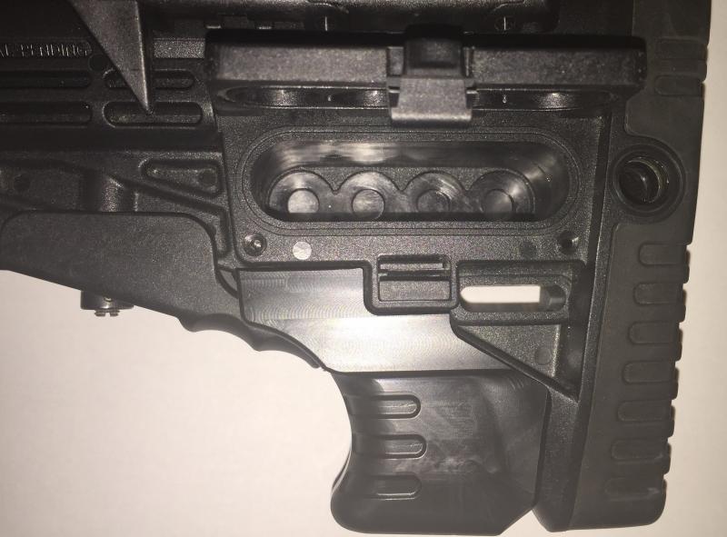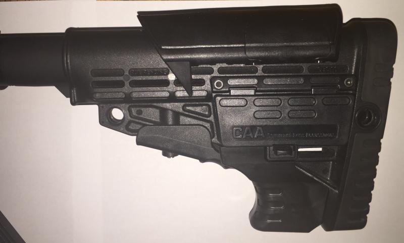 Viene con una culata telescópica fabricada por CAA TACTICAL, con carrillera ajustable y depósito para pilas, totalmente a estrenar.