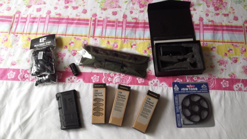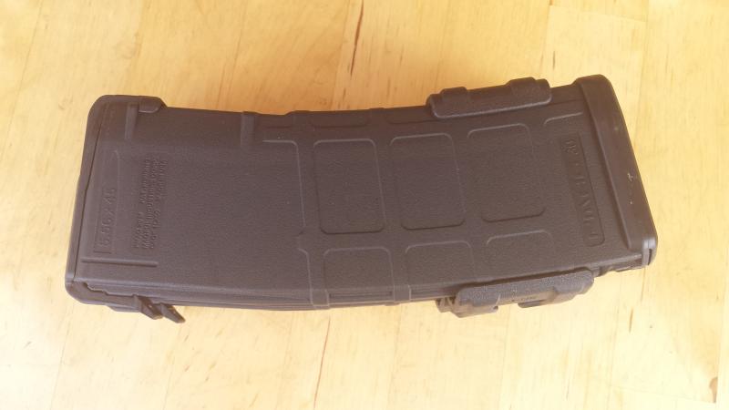 5 cargadores: 2 Magpul de polímero PMAG de 10 disparos limitados para el tiro, 2 Magpul de polimero PMAG de 35 disparos con clip de sujección y el que original que venía con el arma, de chapa.