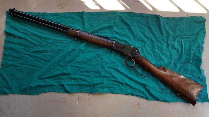 Carabina tigre 44/40, guiada en D. Creo que es de 1923. version larga con trampilla en la culata para utiles de limpieza. Restaurada hace unos años.