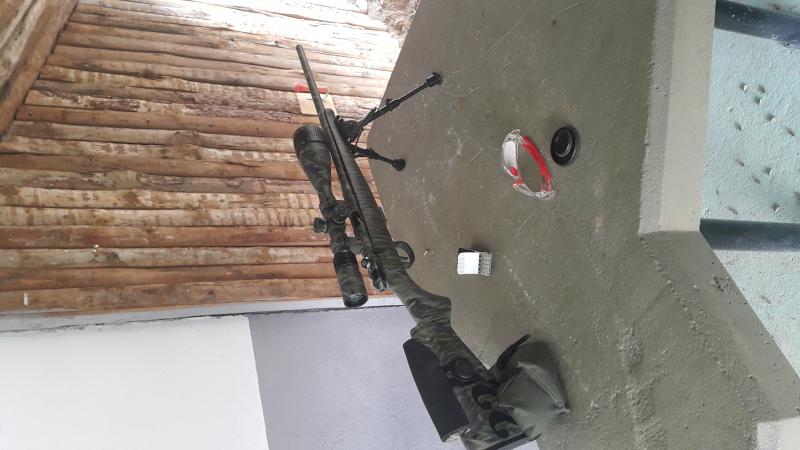 Tiene el gatillo de serie modificado al pelo y la carrillera ajustable en altura. Lleva un visor tasco 10*40*50.
