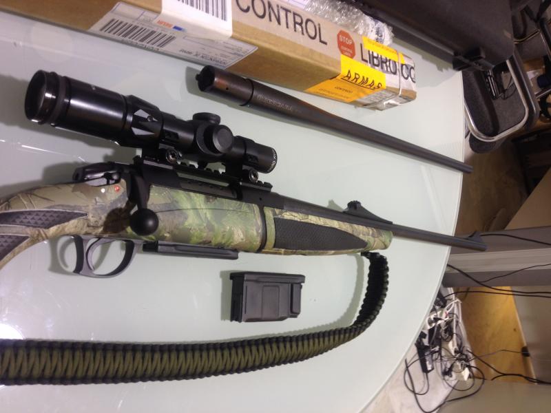 Es un rifle multicalibre, al que se le pueden acoplar cañones desde un 243 hasta un 338 winchester magnun o el 37HH.