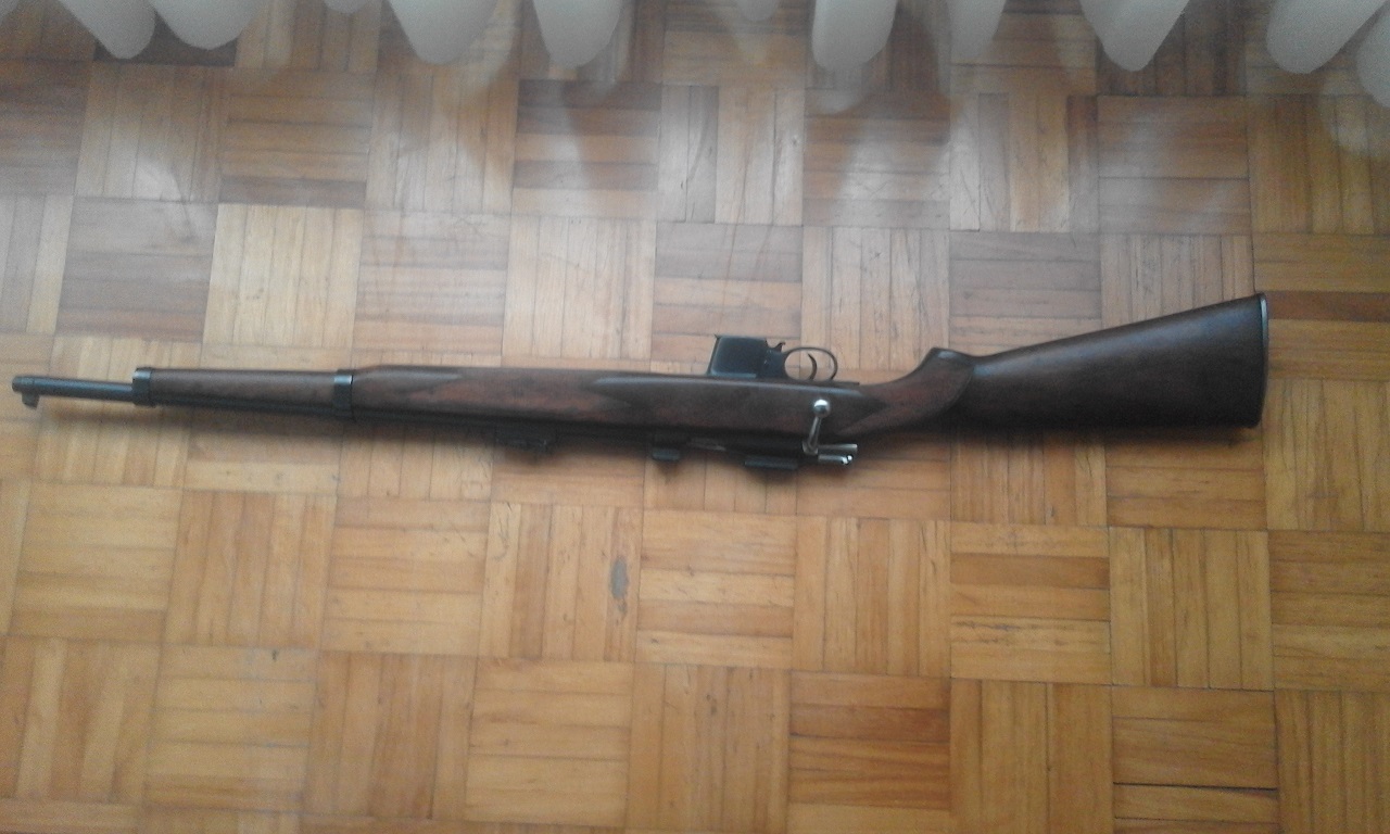 Carabina Destroyer del calibre 9 Largo, recién restaurada por un armero en Éibar, madera lacada, barnizada y picada, pavon, ajustes, maneta de cerrojo curvada para poder tirar con visor, lleva instaladas unas bases Weaber ajustadas a torno para ella (tengo factura por mas de 600 euros de restauración) las fotos no le hacen justicia, desde que se restauro no ha pegado un solo tiro, se cambia por fusiles militares VZ58, FR8, Enfield, Tokaref, Smith Rubin, etc..., el cambio seria arma por arma.