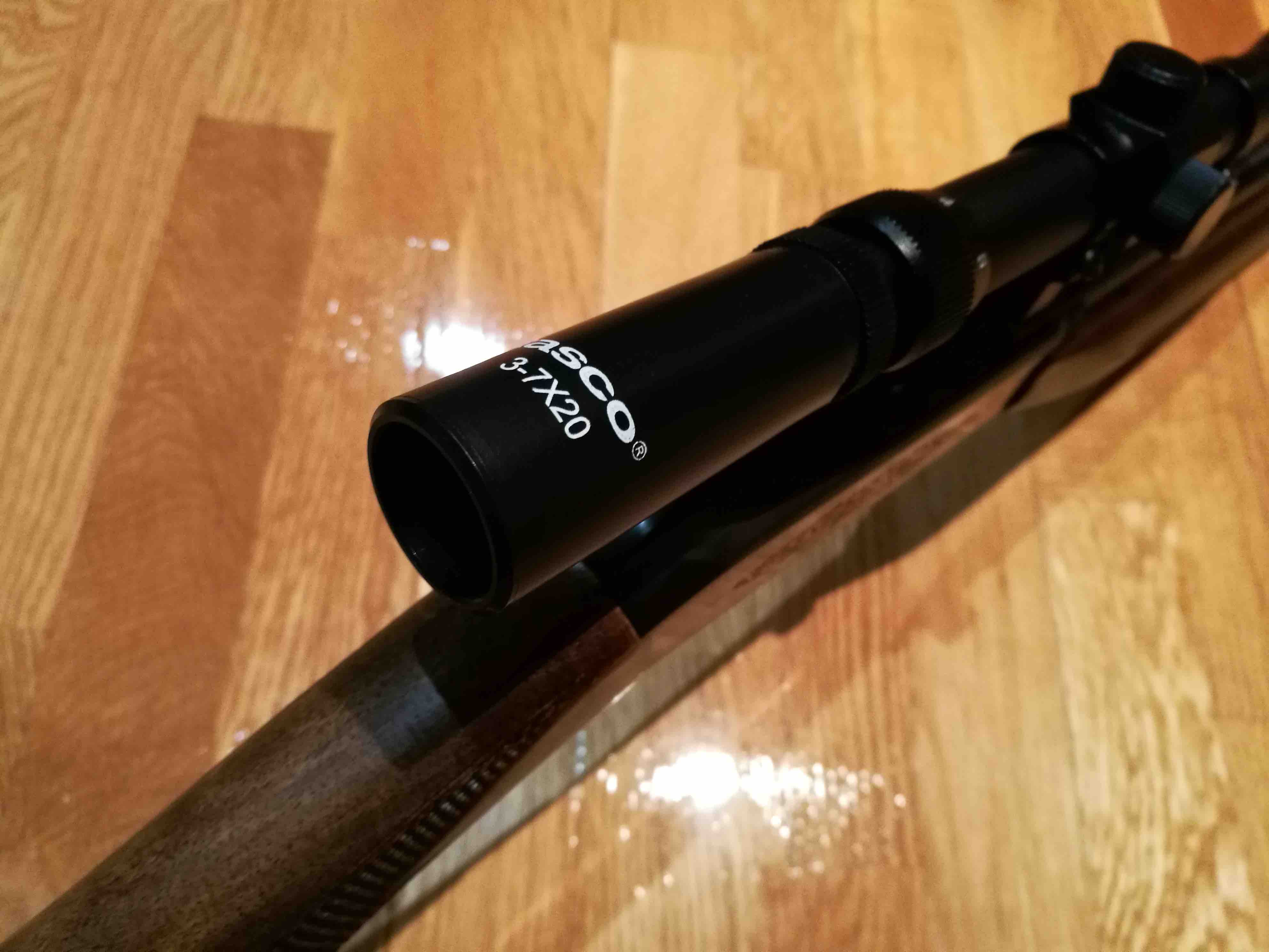 Fotos con visor Nikko Stirling 3-9x40 con ajuste de paralaje delantero, montado para probar la carabina a 50m. Los resultados a 50m con CCI Minimag y apoyo delantero no están nada mal para ser una carabina desmontable.