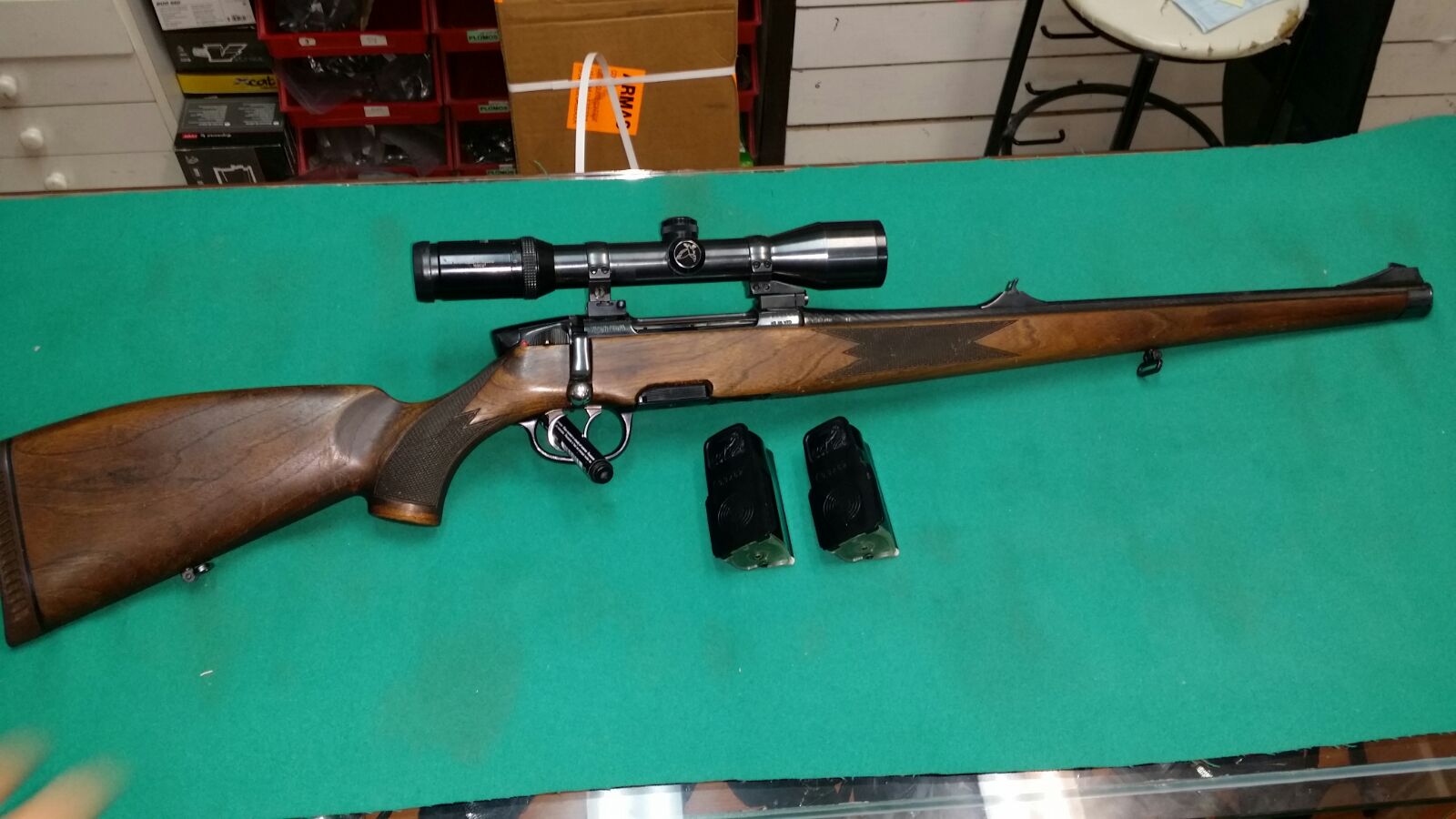 Saludos compañeros ,dos lugareños de la zona venden estos fierros,una pasadaii un marlincher caja larga con 2 cargadores y monturas apel con swaroski 1.5x6x42,impecable calibre 9.3 x62 ..1600€