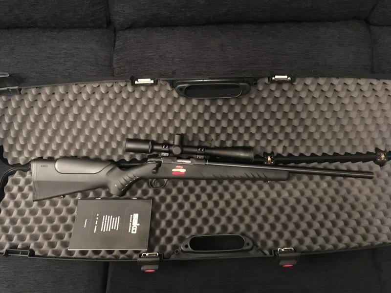 Vendo carabina Sako Quad Heavy Barrel calibre 22lr con anillas y visor Weaver T36X40 black. Gatillo especial de fábrica bajo pedido, con posición de tiro normal y con posición de tiro al pelo. Es un extra con un coste de 140€. Cañón sin rosca. Cargador de 5 cartuchos. Maletín con combinación (disponible también la caja de cartón de origen). El equipo tiene 6 meses y ha disparado exactamente 300 balas (demostrable). Lo poco que se ha utilizado ha denotado que agrupa bien -5 y Vbull aunque algún 4 siempre se le escapa al indio- a 100 metros con munición RWS R50. La vendo porque tengo otro proyecto en mente y no voy a utilizarla prácticamente nada. Su precio total fue de 1130€ la carabina, 670€ el visor, 40€ las anillas y 50€ el maletín. 1890€. Lo vendo por 1475€ + portes a cuenta del comprador, un precio a mi ver razonable debido a su poco uso. Dispone de la garantía oficial del fabricante. Saludos