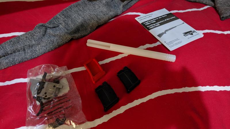 - Disparador 2 tiempos a 180 g, modelo 5098. Este disparador se puede pedir opcional con esta carabina. Incluyo también el que traía de origen de un tiempo y a aproximadamente 1 kg.