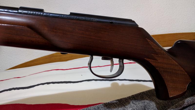 Carabina Anschutz 1416 d HB con culata Beavertail Acción 64, no tendrá mas de 3000 disparos y mi mejor puntuación fueron 244/250 y los que faltaron seguro que fue culpa del tirador. La carabina esta impecable y tiene lo siguiente: